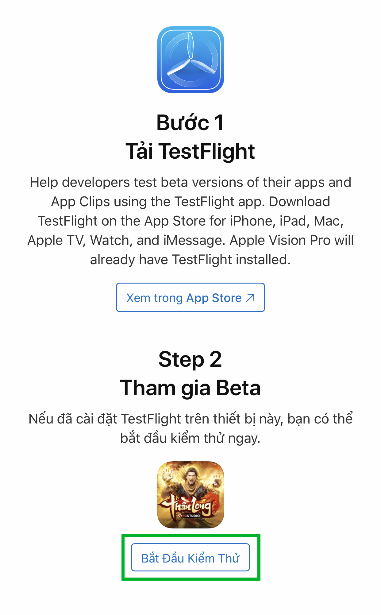 - Bước 2: Sau khi cài đặt xong Testflight, Click vào đây để bắt đầu tải trò chơi: